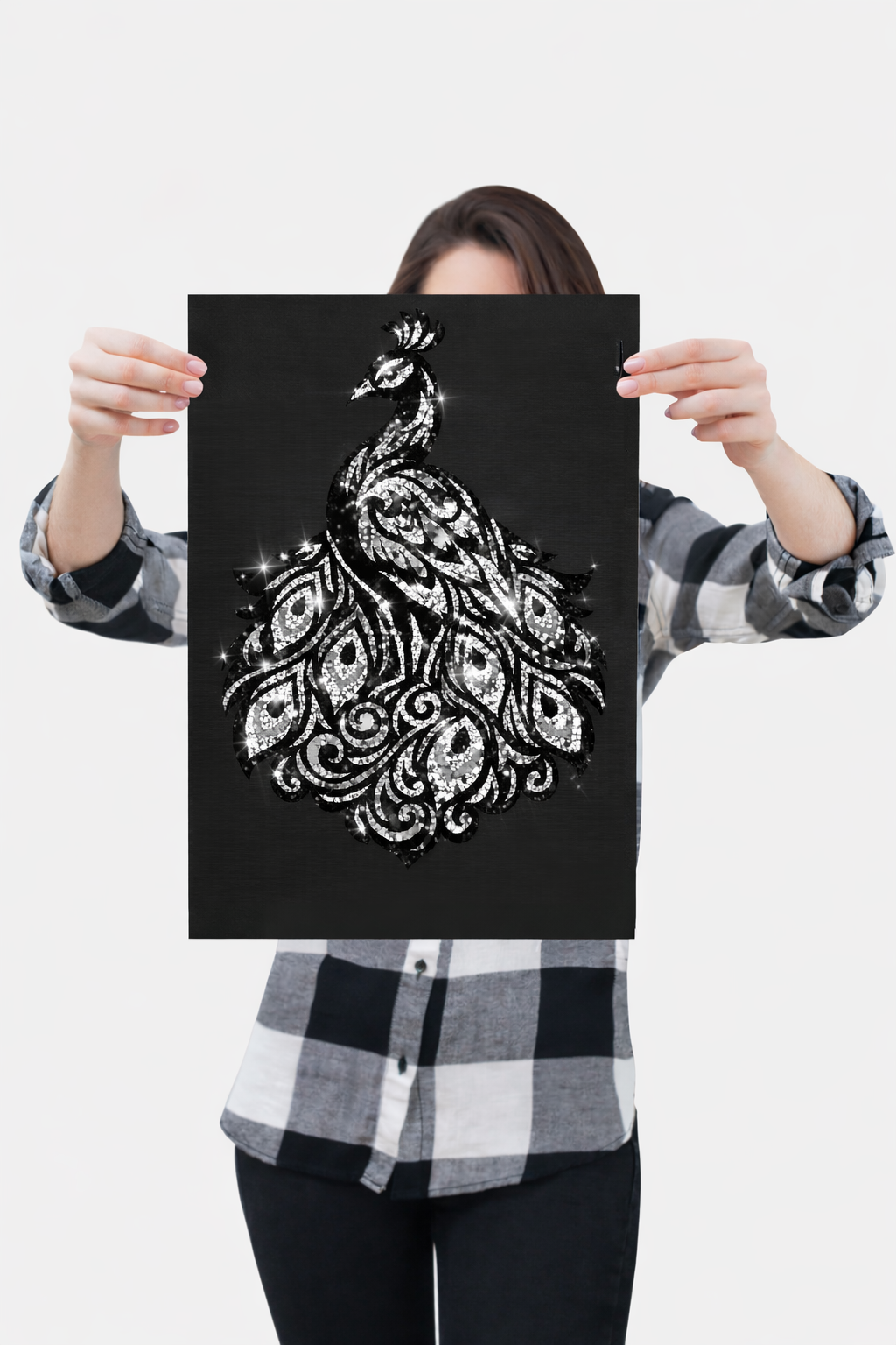 Meet Aurelion — a radiant symbol of grace and quiet power, where classic black-and-white design sets the stage for luminous sparkle. Once rhinestoned, each feather comes alive with depth and movement, turning contrast into shimmer and flow. Created for artists who love elegant statement pieces that transform into refined, elevated art.