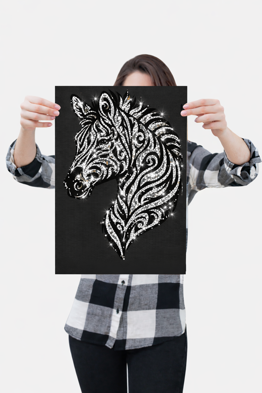 Meet Valen — a striking blend of grace and contrast, where timeless black-and-white design becomes a canvas for luminous sparkle. Once rhinestoned, each flowing stripe and curve catches the light, creating depth, movement, and modern elegance. Designed for artists who love bold, graphic statement pieces that transform into refined, elevated art.
